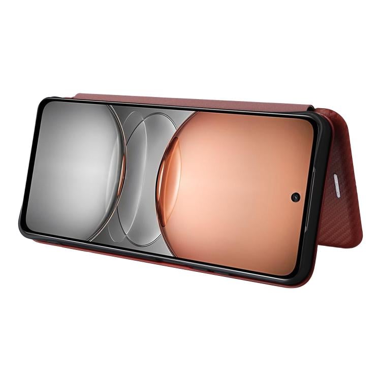 Чехол-книжка Carbon Fiber Texture на Realme C75 4G Global - коричневый