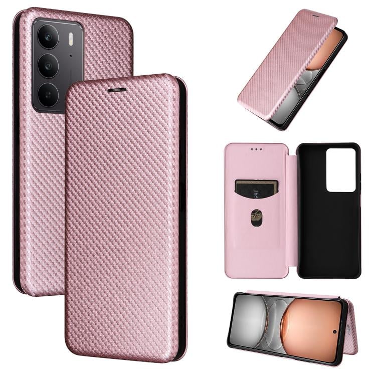 Чехол-книжка Carbon Fiber Texture на Realme C75 4G Global - розовый