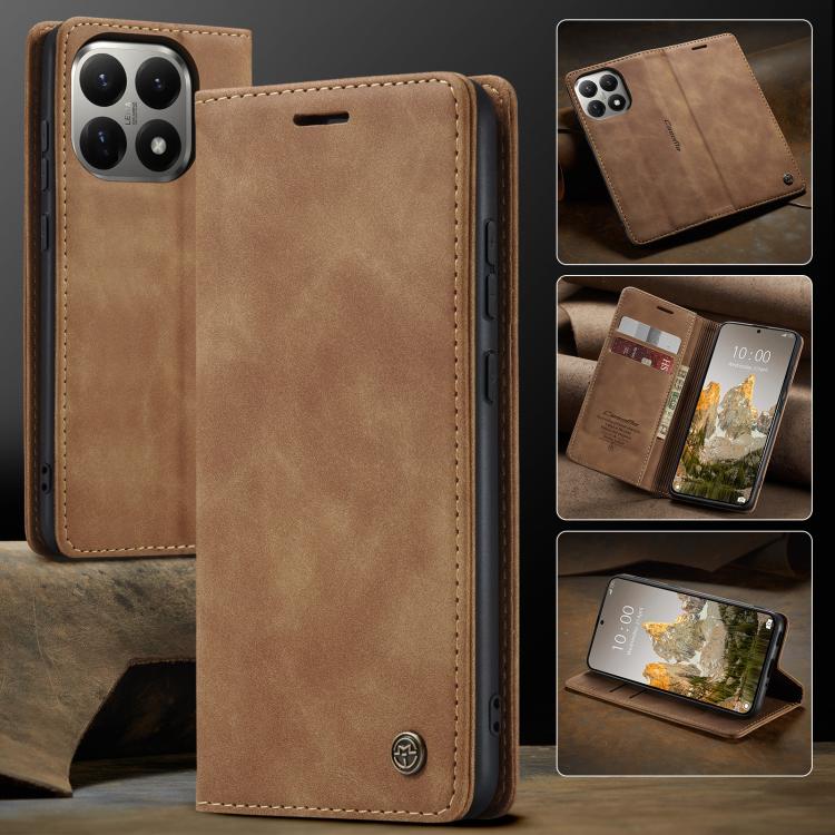 Чехол-книжка CaseMe-013 многофункциональный с кармашком на карт на Xiaomi 15T - коричневый