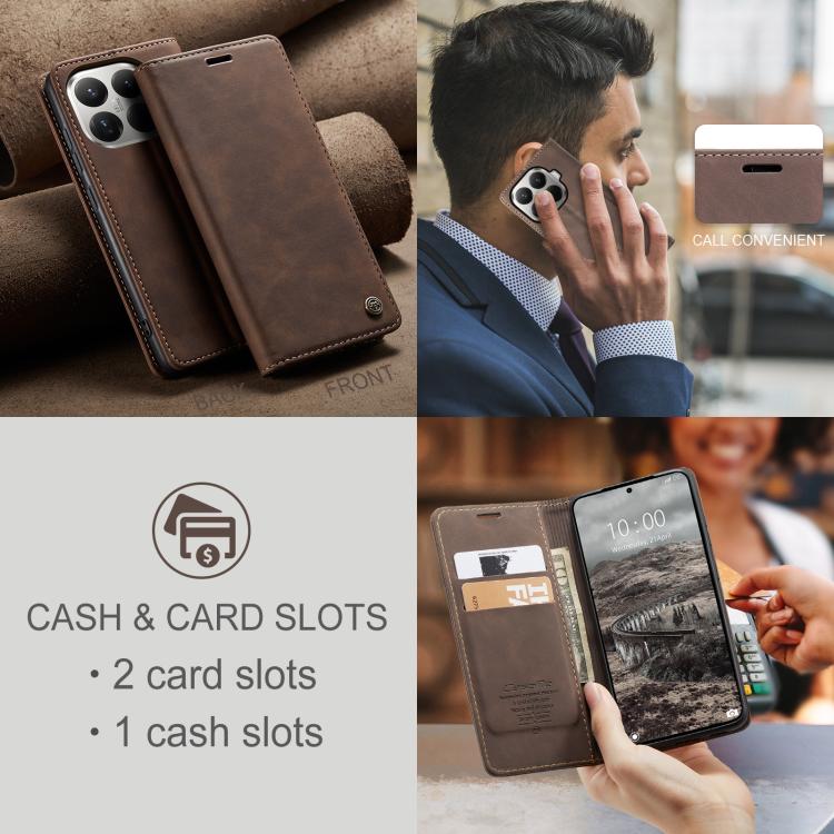 Чехол-книжка CaseMe-013 многофункциональный с кармашком на карт на Xiaomi 15T Pro - кофейный