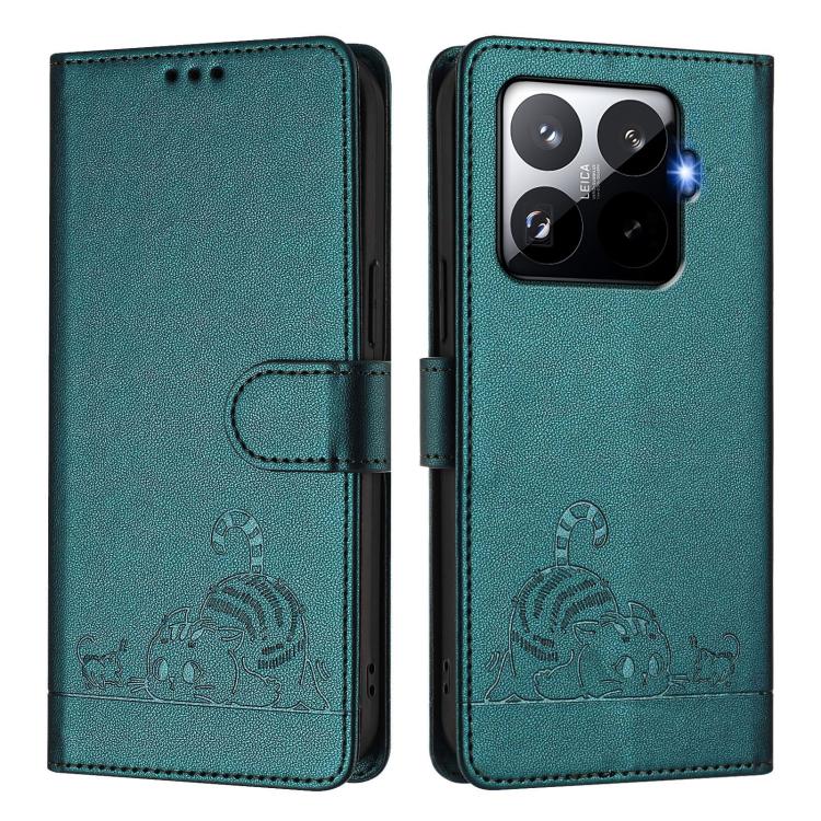Описание Чехол-книжка Cat Embossing Pattern на Xiaomi 15T Pro 5G - Green