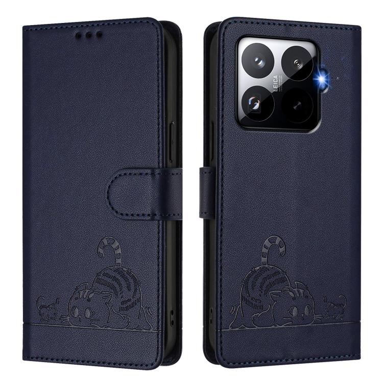 Описание Чехол-книжка Cat Embossing Pattern на Xiaomi 15T Pro 5G - синий