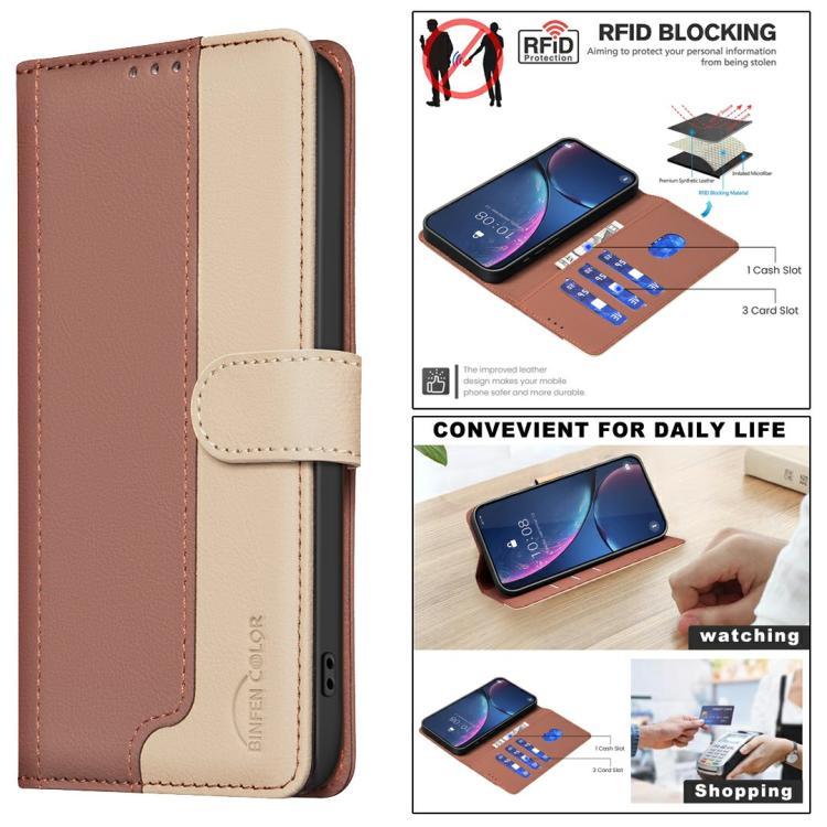 Описание Чехол-книжка Color Matching RFID Anti-theft Leather для Motorola Moto G05 - коричневый