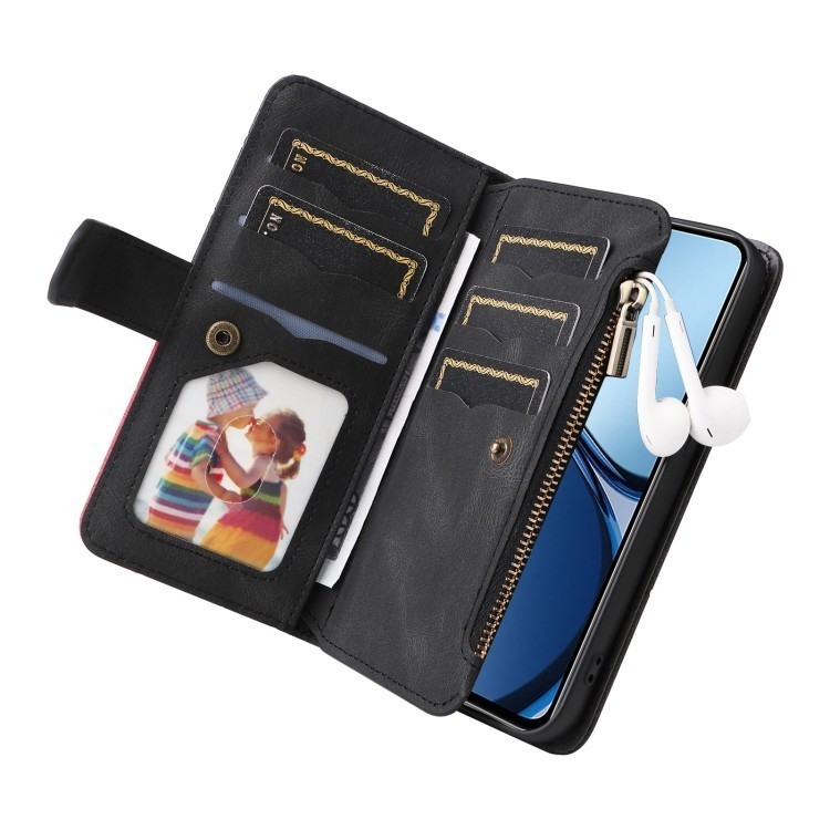 Характеристики Чехол-книжка Dual-color 9 Card Slots Zipper Wallet Leather для Realme C61/C63/Note 60/Note 60x - черный