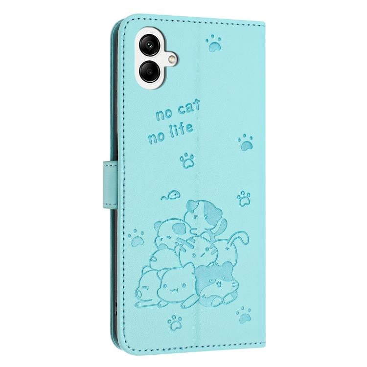 Чехол-книжка Embossed Kitten Phone Leather на Samsung Galaxy A07 4G - зеленый