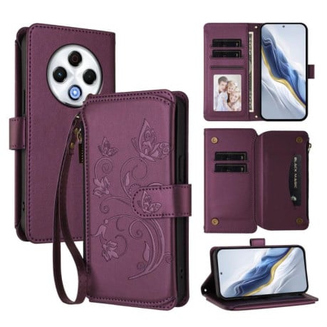 Чехол-книжка Escase кошелёк на молнии на Tecno Spark 30 4G — тёмно-фиолетовый