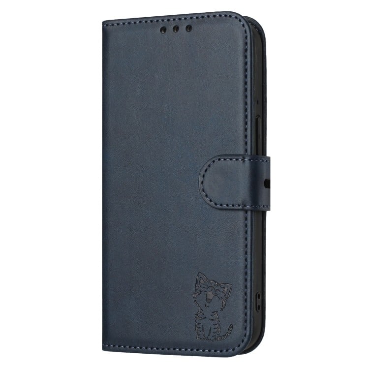 Синий чехол-книжка Happy Cat Pattern с милым тиснением кота и магнитной застежкой