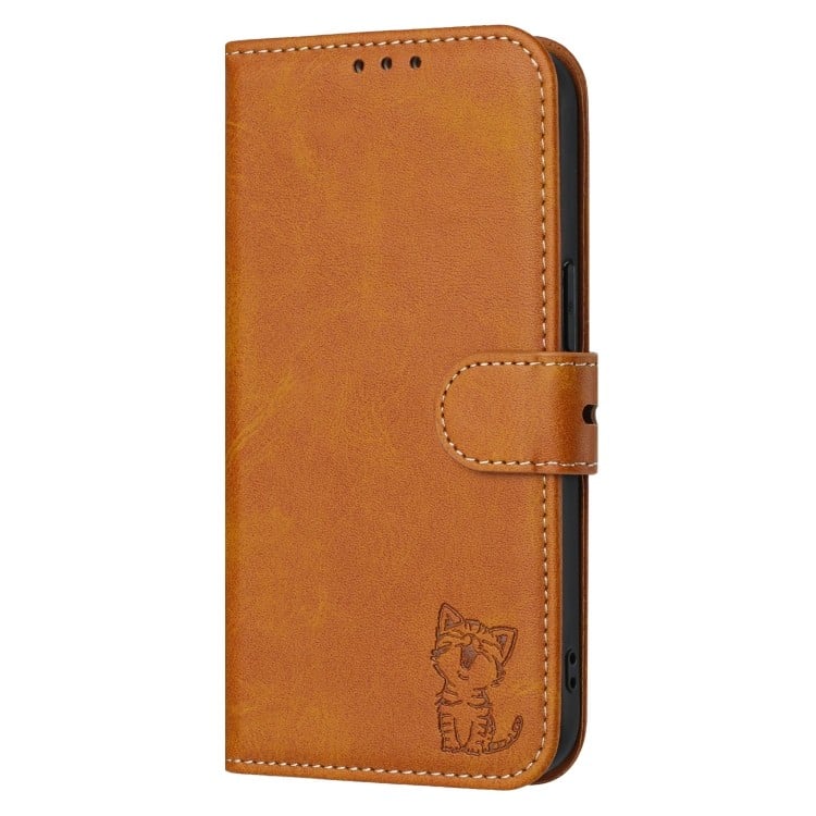 • Дизайн с тиснёным котёнком Happy Cat добавляет позитивного настроения и индивидуальности. Рельефное изображение выполнено аккуратно, не стирается со временем. Подходит любителям животных и тем, кто ценит милые детали в повседневных аксессуарах. Нейтральный желтый оттенок сочетается с любым стилем одежды.
