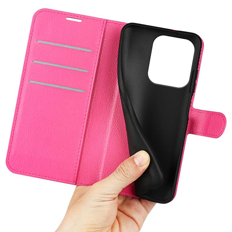Характеристики Чехол-книжка с фактурой Litchi и магнитным хлястиком на Xiaomi Redmi 15C 5G / 4G EU 173mm - пурпурно-красный