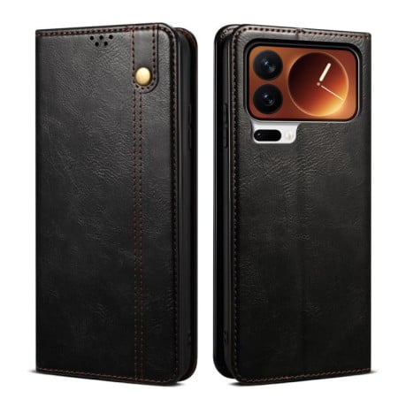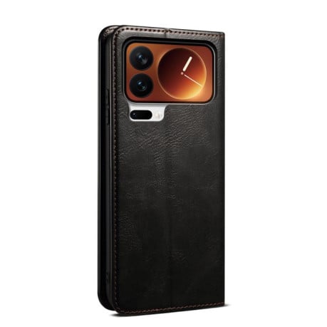Чехол-книжка Simple из эко-кожи Crazy Horse с воском на Xiaomi 17 Pro Max — чёрный