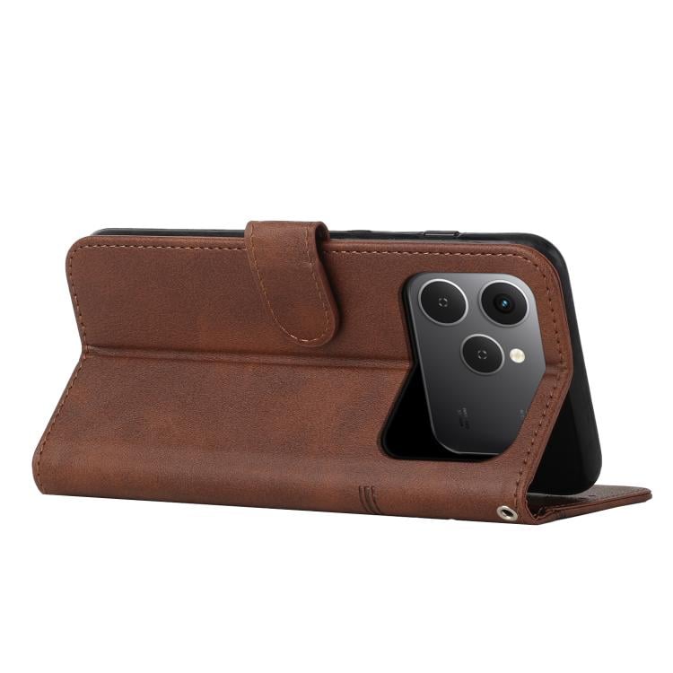 Чехол-книжка со строчкой и фактурой Calf на Xiaomi Poco X7 Pro - коричневый