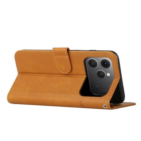 Чехол-книжка со строчкой и фактурой Calf на Realme C67 4G Global - коричневый