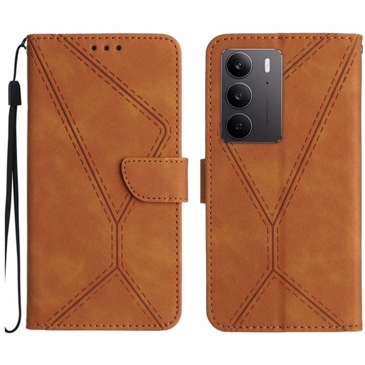 Чехол-книжка Stitching Embossed Leather для Realme 13 5G/12 5G/12X 5G Global - черный