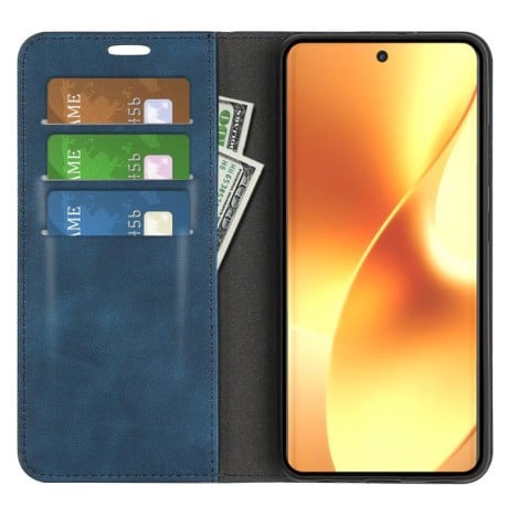 Описание Чехол-книжка в стиле Retro мягкое покрытие Skin Feel деловой дизайн на Realme 15 5G / 15 Pro 5G — тёмно-синий