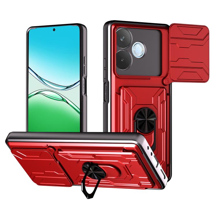Чехол со шторкой на камеры Sliding Camshield и кармашком для карт на OPPO A5 Pro 5G Global - красный