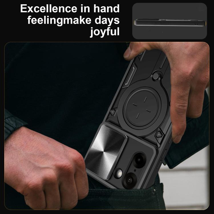 Характеристики Чехол со шторкой камеры CD фактурой и подставкой на OnePlus Ace 5 Racing / Nord CE5 - черный