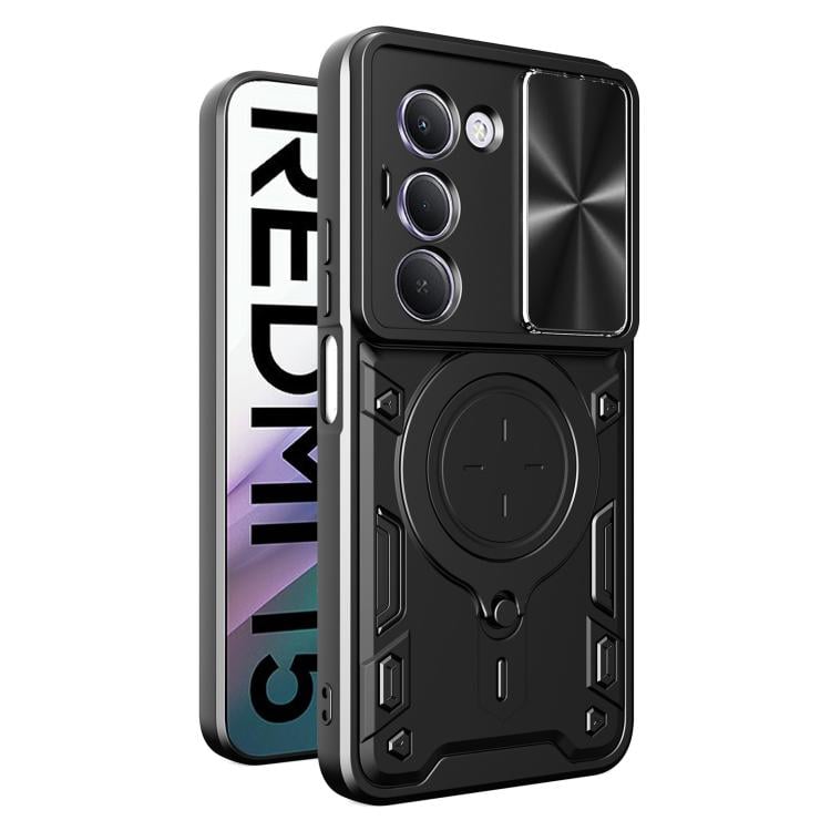 Характеристики Чехол со шторкой камеры CD фактурой и подставкой на Xiaomi Redmi 15 5G / 4G EU 171mm - черный