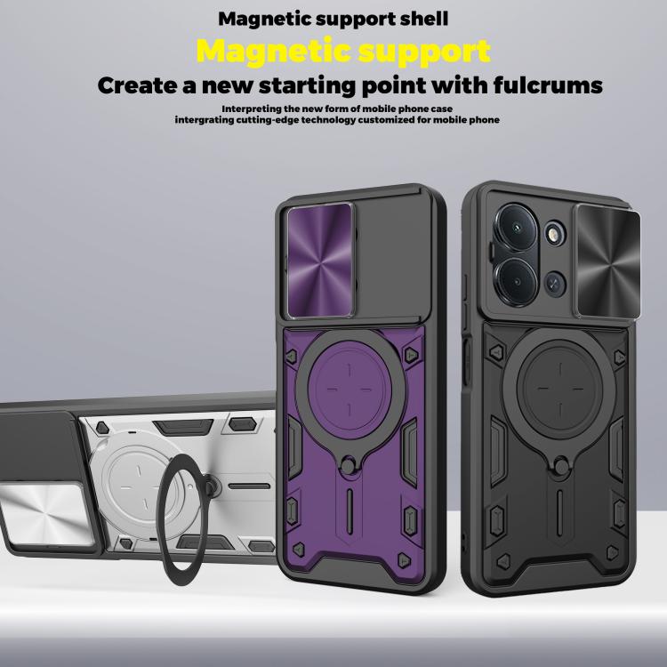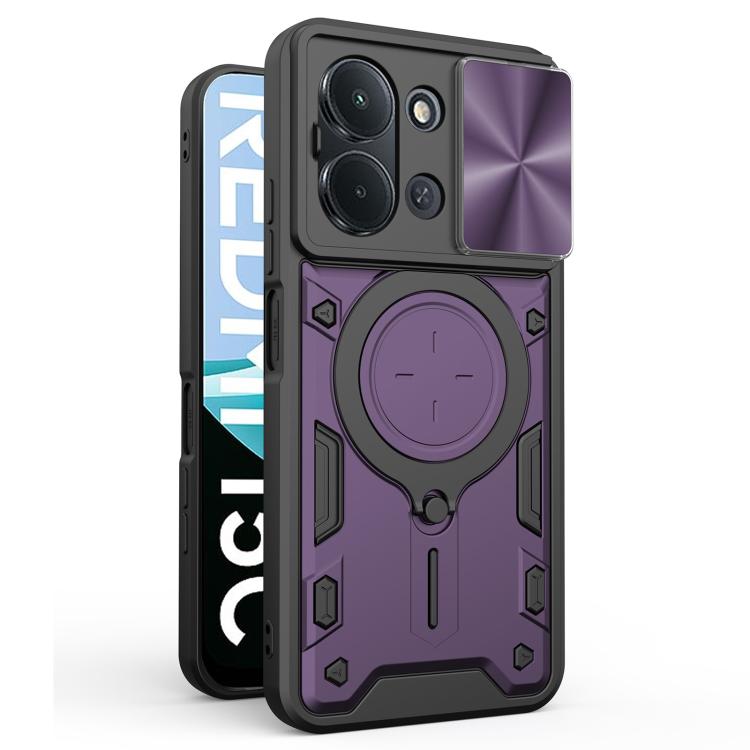 Характеристики Чехол со шторкой камеры CD фактурой и подставкой на Xiaomi Redmi 15C 5G / 4G EU 173mm - фиолетовый