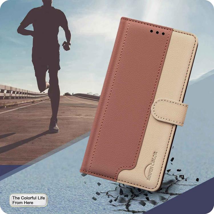 Чехол-книжка Color Matching RFID Anti-theft Leather для на Samsung Galaxy M16 5G / F16 5G - коричневый