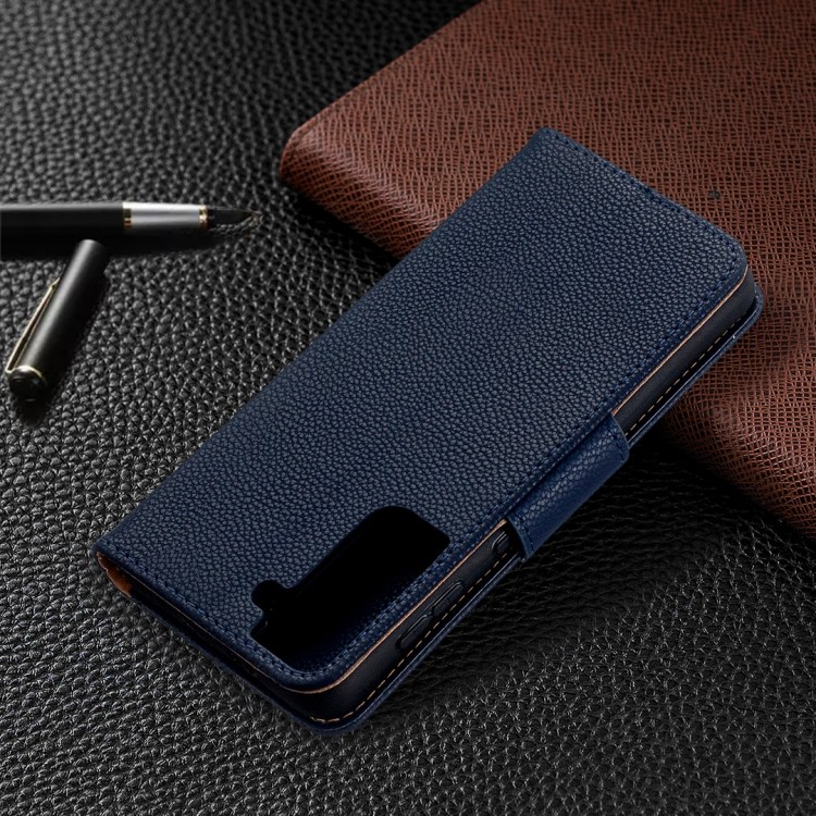 Характеристики Чехол-книжка Litchi Texture Pure Color на Samsung Galaxy S21 - синий
