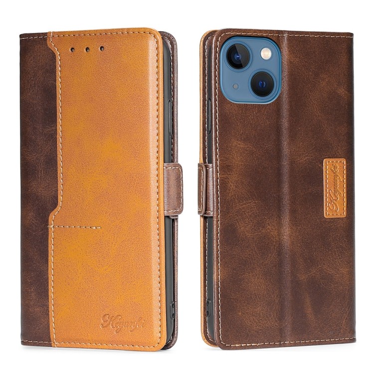 Чехол-книжка с магнитной застежкой и контрастной отделкой на iPhone 14 Plus - коричневый