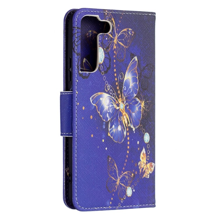 Характеристики Чехол-книжка Colored Drawing Pattern для Samsung Galaxy S22 Plus 5G - Purple Butterfly