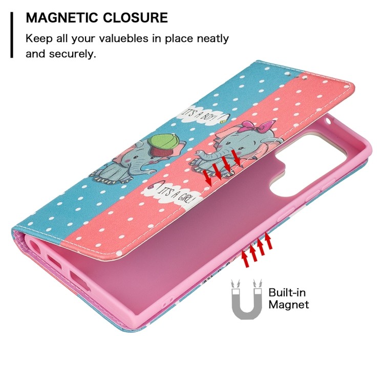 Характеристики Чехол-книжка Colored Drawing Pattern Invisible для Samsung Galaxy S22 Ultra 5G - Elephant