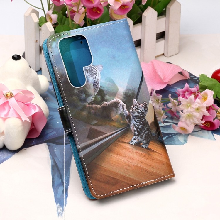 Характеристики Чехол-книжка Colored Drawing Pattern для Samsung Galaxy S22 Ultra 5G - Mirror Cat
