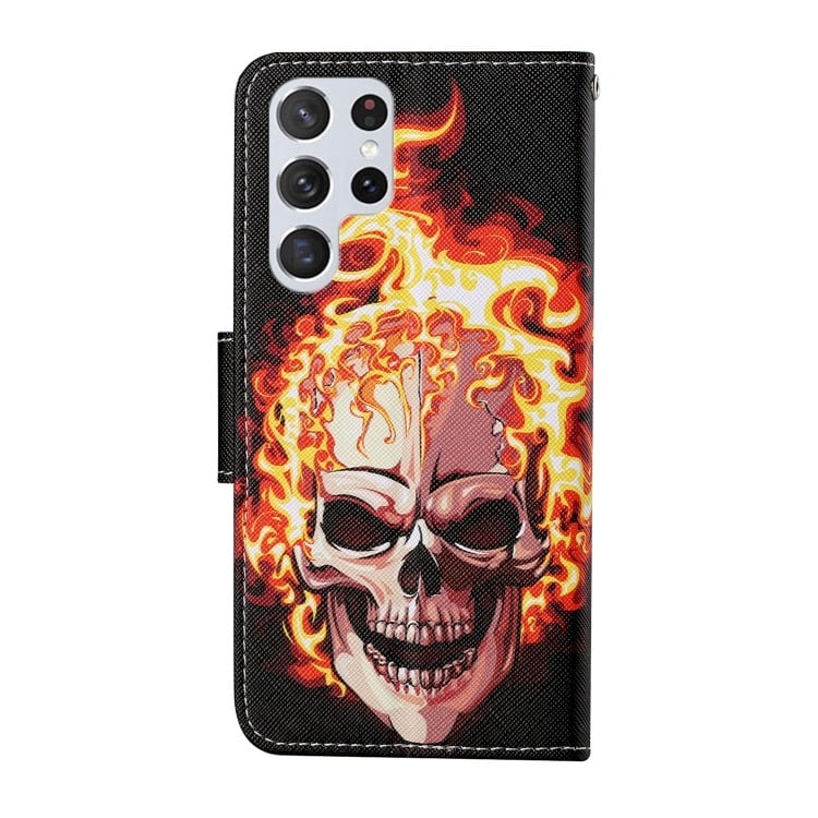Чехол-книжка Colored Drawing Pattern для Samsung Galaxy S23 Ultra 5G - Flame Skull