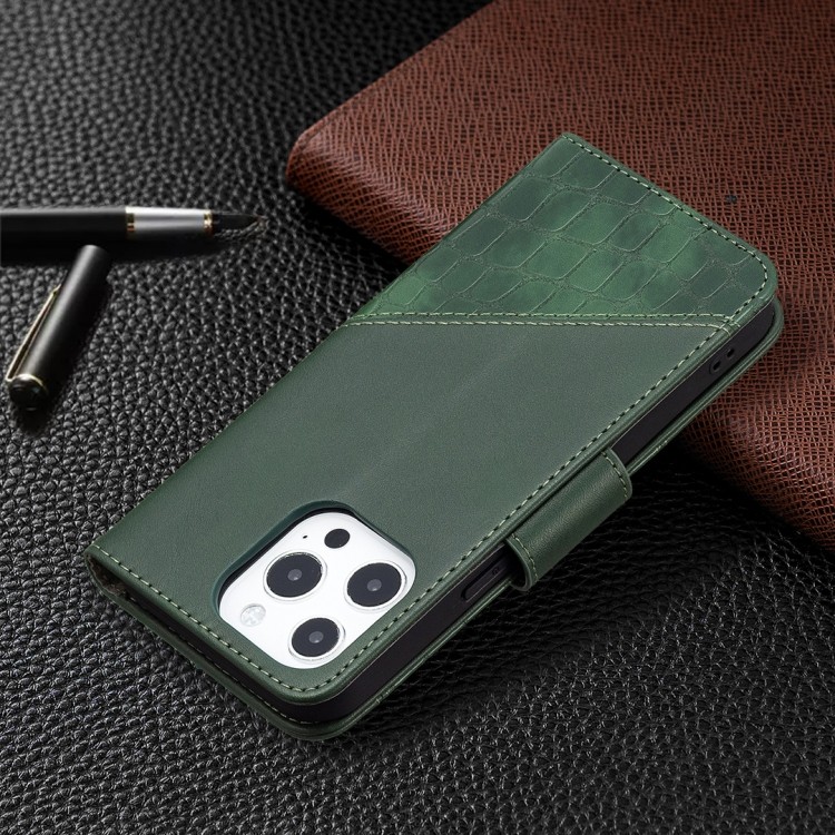 Описание Чехол-книжка Matching Color Crocodile Texture на iPhone 13 Pro - зеленый