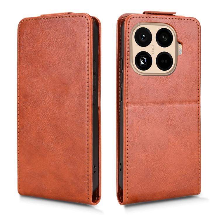 Флип-чехол Magnetic Vertical Flip Leather на Xiaomi 15T Pro 5G - коричневый