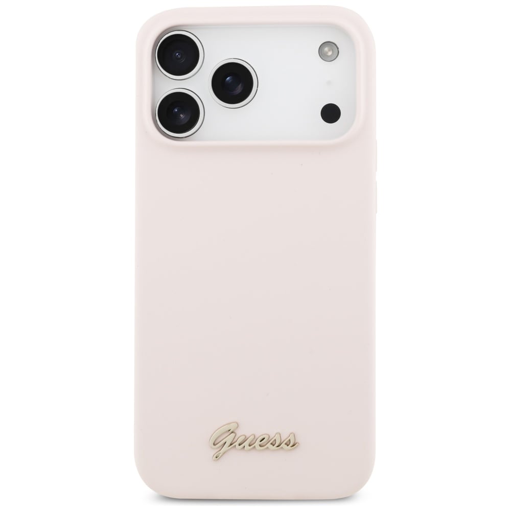 Характеристики Оригинальный силиконовый чехол Guess Silicone Script Metal Logo с MagSafe на iPhone 17 Pro Max - Pink