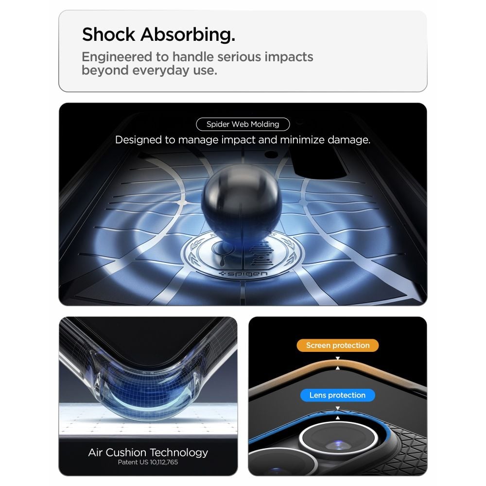 • Air Cushion Technology в каждом углу — это воздушные карманы, которые сжимаются при ударе, гася кинетическую энергию. Они работают независимо друг от друга, обеспечивая максимальную защиту при любом угле падения. Углы — самые уязвимые точки смартфона, и здесь они надёжно прикрыты.