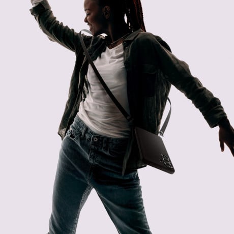 • Отверстия для темляка в нижней части позволяют прикрепить шнурок, ремешок или карабин. Это удобно для ношения смартфона на шее в походах, на фестивалях или в толпе, где важно не потерять устройство. Отверстия усилены металлическими люверсами для долговечности.