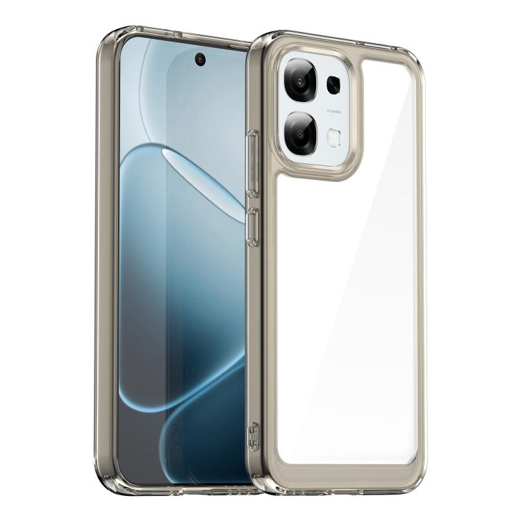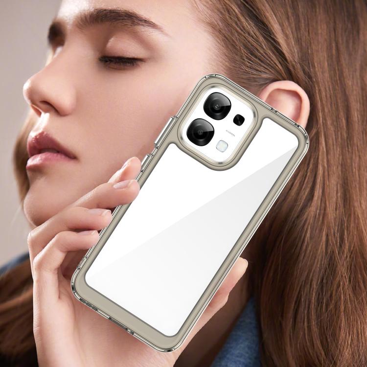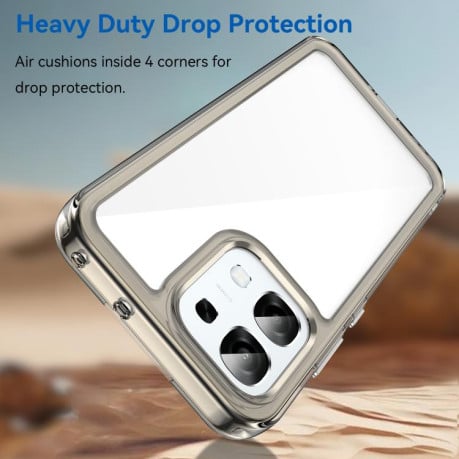 Противоударный чехол Colorful Acrylic Series с цветной силиконовой боковиной на OPPO A6 Pro 5G Global — прозрачный/серый