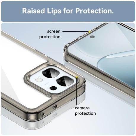 Характеристики Противоударный чехол Colorful Acrylic Series с цветной силиконовой боковиной на OPPO A6 Pro 5G Global — прозрачный/серый