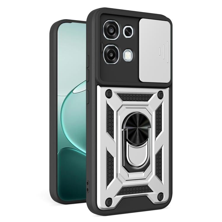 Противоударный чехол Sliding Camshield на OPPO A6 Pro 4G / 5G / F31 5G — серебристый