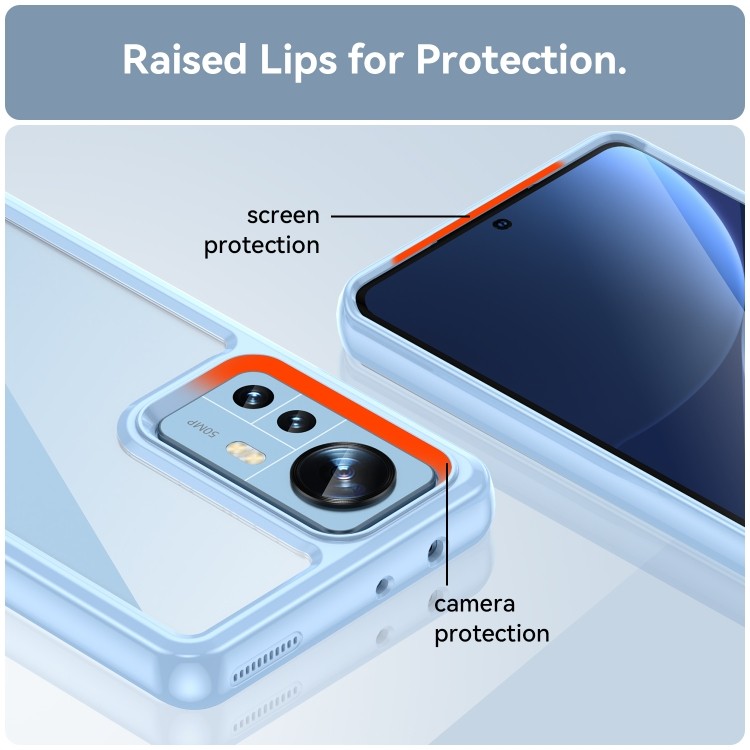 Противоударный чехол Colorful Acrylic Series с цветной силиконовой боковиной на Xiaomi 12 Lite - голубой