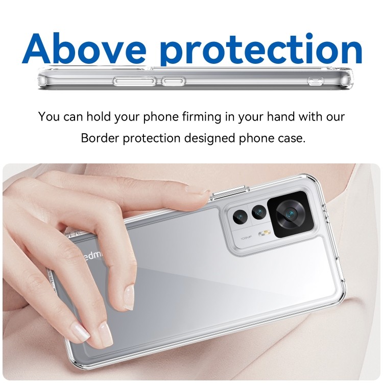 Противоударный чехол Colorful Acrylic Series с цветной силиконовой боковиной на Xiaomi Redmi K50 Ultra/Xiaomi 12T/Xiaomi 12T Pro - прозрачный