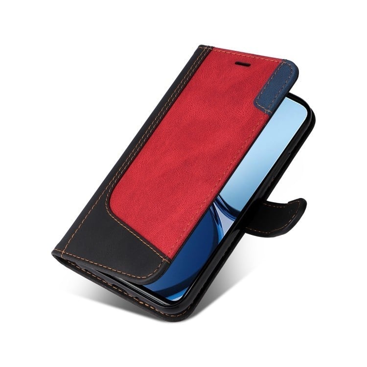 Описание Противоударный чехол Three Color Splicing Leather на Realme C61/C63/Note 60/Note 60x- красный