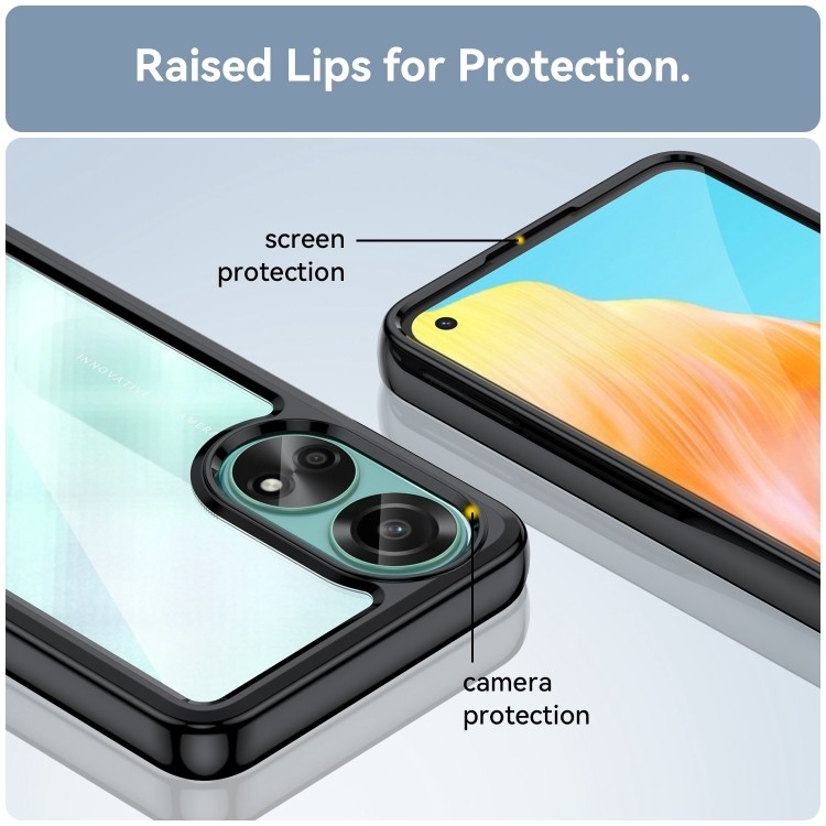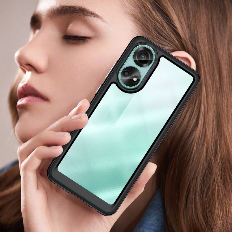 Характеристики Противоударный чехол Colorful Acrylic Series с цветной силиконовой боковиной на OPPO A78 4G - черный