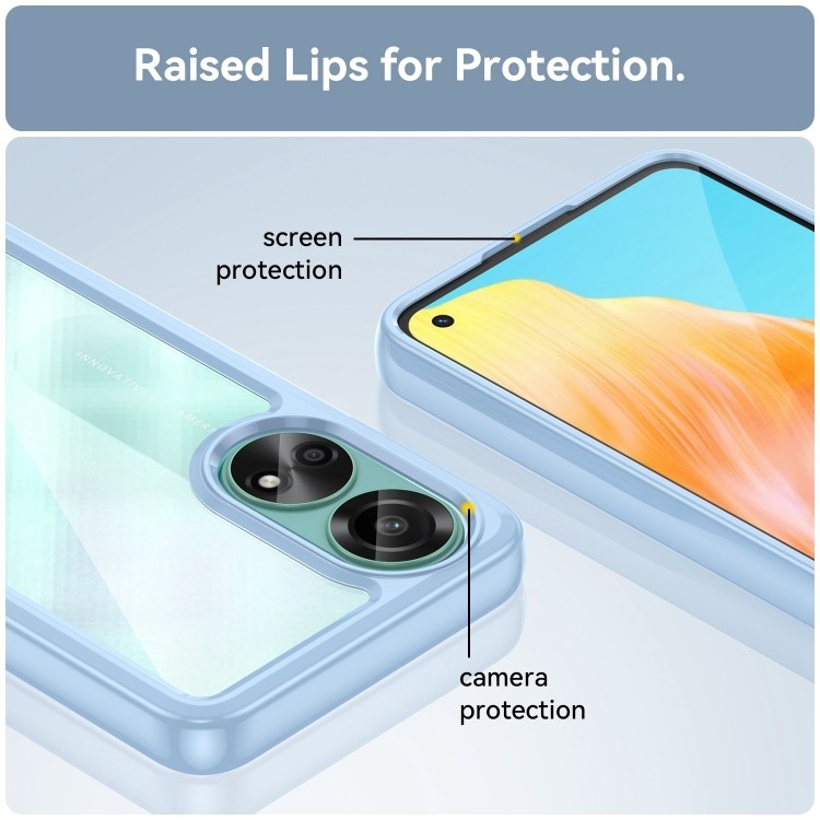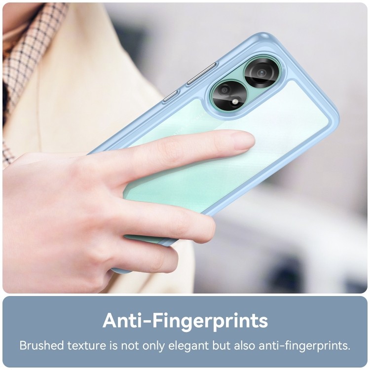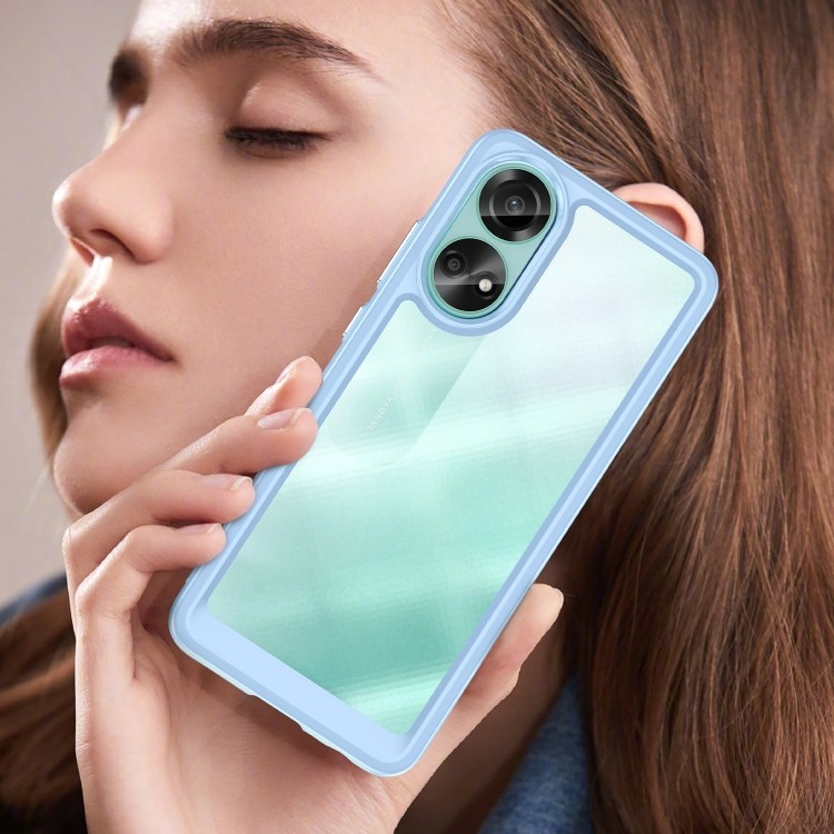 Характеристики Противоударный чехол Colorful Acrylic Series с цветной силиконовой боковиной на OPPO A78 4G - синий