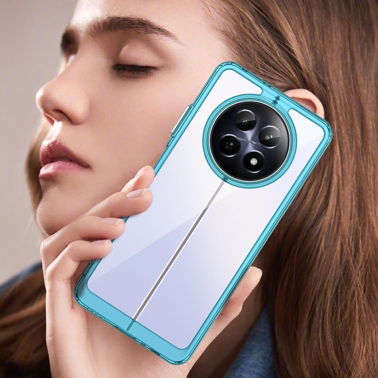 Противоударный чехол Colorful Acrylic Series с цветной силиконовой боковиной на Realme 13 5G/12 5G/12X 5G - синий