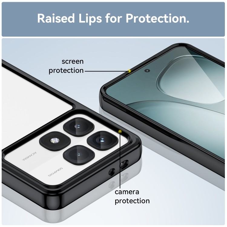Характеристики Противоударный чехол Colorful Acrylic Series с цветной силиконовой боковиной на Xiaomi 14T Pro - черный