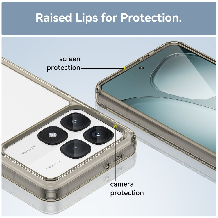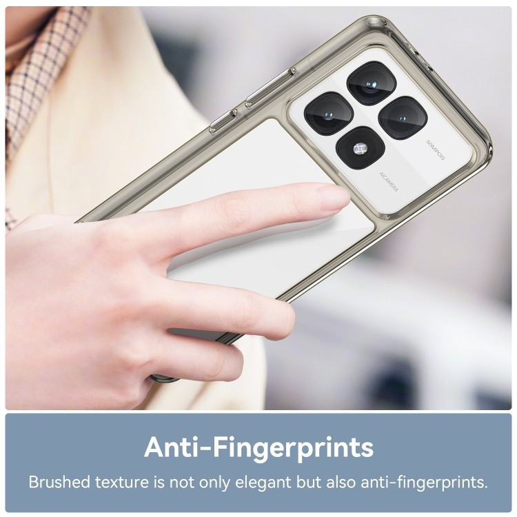 Характеристики Противоударный чехол Colorful Acrylic Series с цветной силиконовой боковиной на Xiaomi 14T Pro - прозрачно-серый