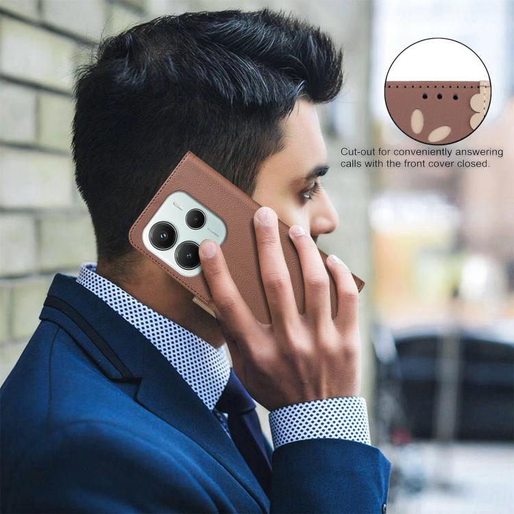 Противоударный чехол Shield Frame Holder MagSafe для Xiaomi Poco M7 Pro 5G - коричневый