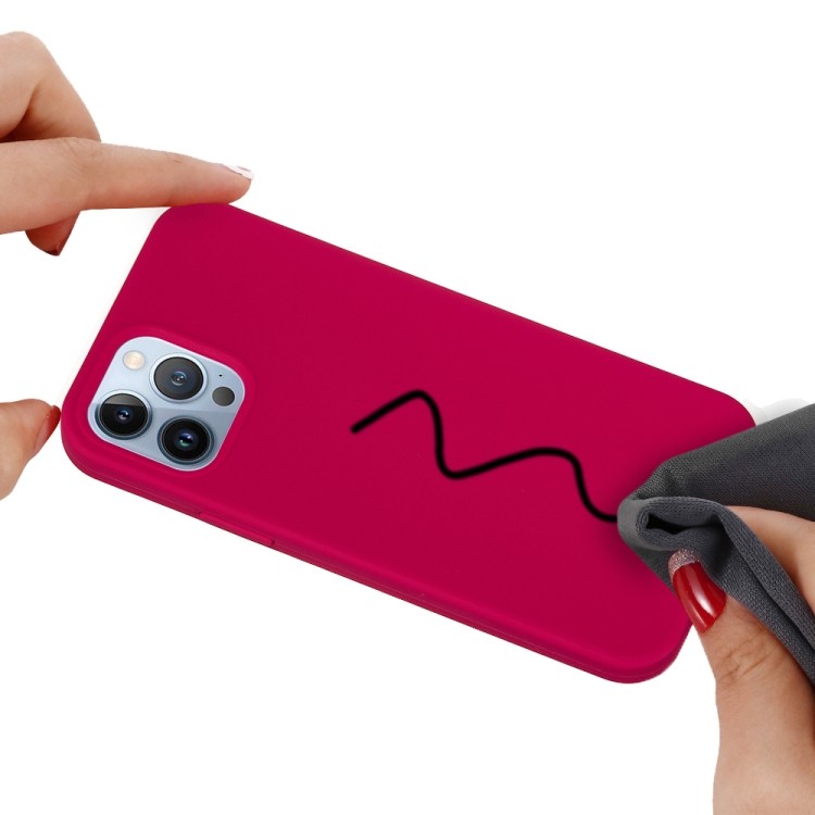 Характеристики Силиконовый чехол Solid Color Liquid на iPhone 15 Pro Max - пурпурно-красный