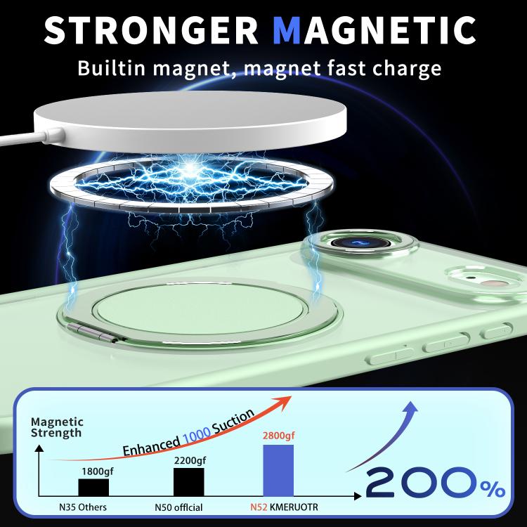 • Посилений магніт N52 забезпечує силу притягання 2800 gf — на 200% вищу, ніж у офіційних аксесуарів Apple та аналогів. MagSafe-зарядка миттєво фіксується у точному положенні, не зміщується навіть при вібрації або дотиках. Вбудоване магнітне кільце інтегроване в корпус, тож зовнішній вигляд залишається мінімалістичним.