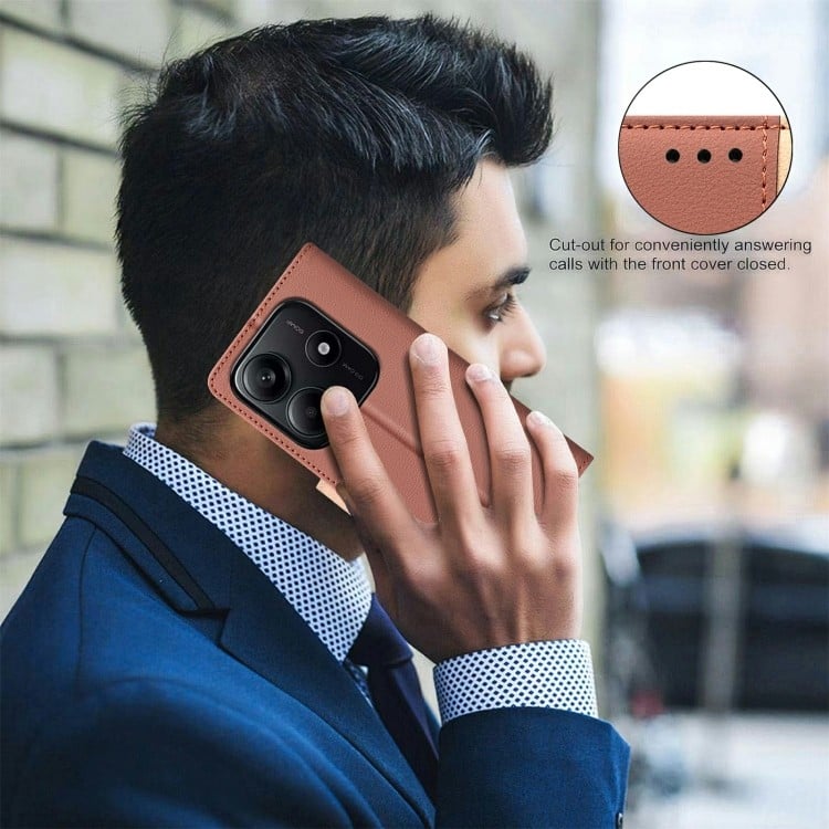 Опис Чохол-книжка Color Matching RFID Anti-theft Leather для Xiaomi Redmi Note 14 5G/Poco M7 Pro 5G - коричневий