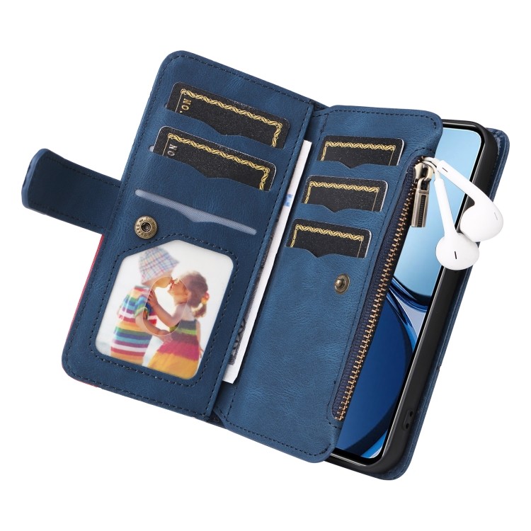 Особливості Чохол-книга Dual-color 9 Card Slots Zipper Wallet Leather для Realme C63 / C61 / Note 60 - синій